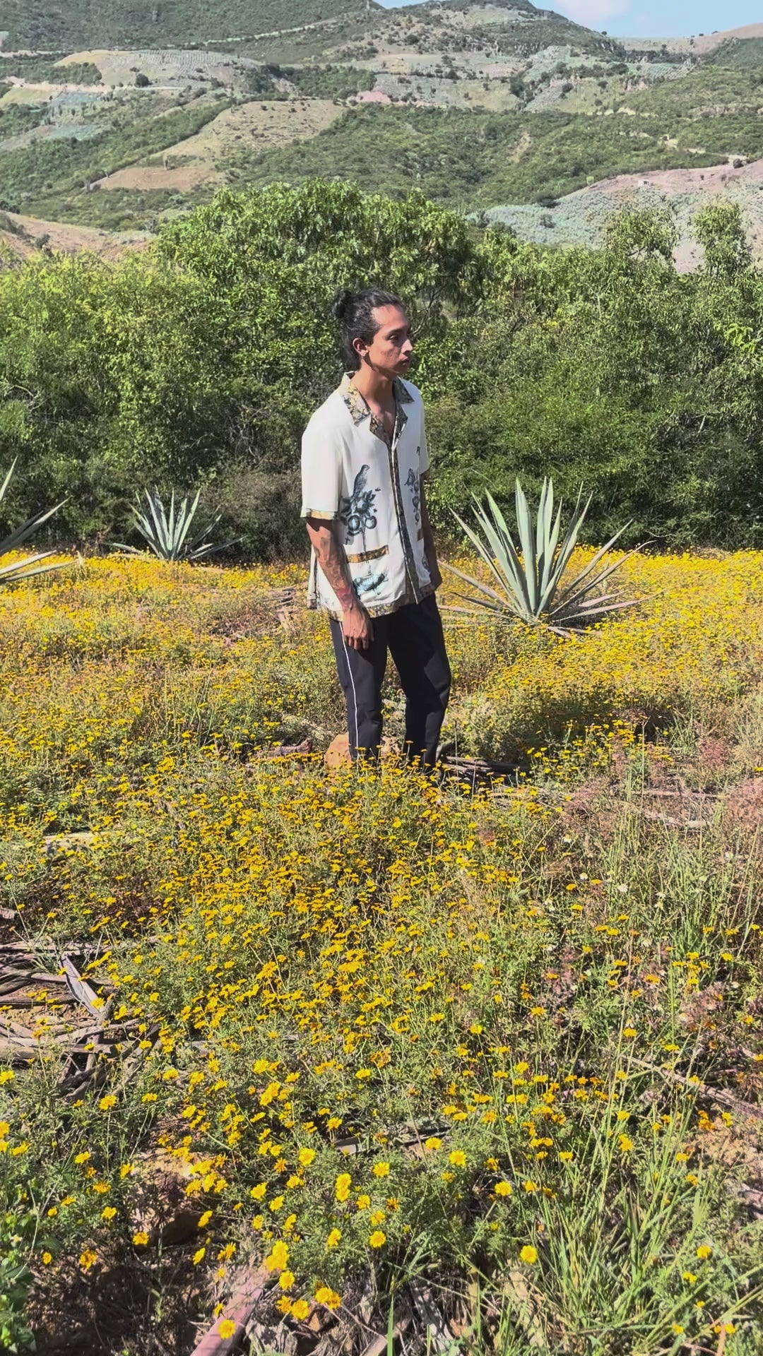 Second, 'Alexis Zambrano x Tombolo' is a limited edition made-to-order Tencel shirt. This preorder shirt's design combines digitally printed elements from two works that Alexis created for the Artist Residency, entitled “Study for Grisaille Botanical Assemblage (No. 1 and 2)" . The works themselves are for sale.