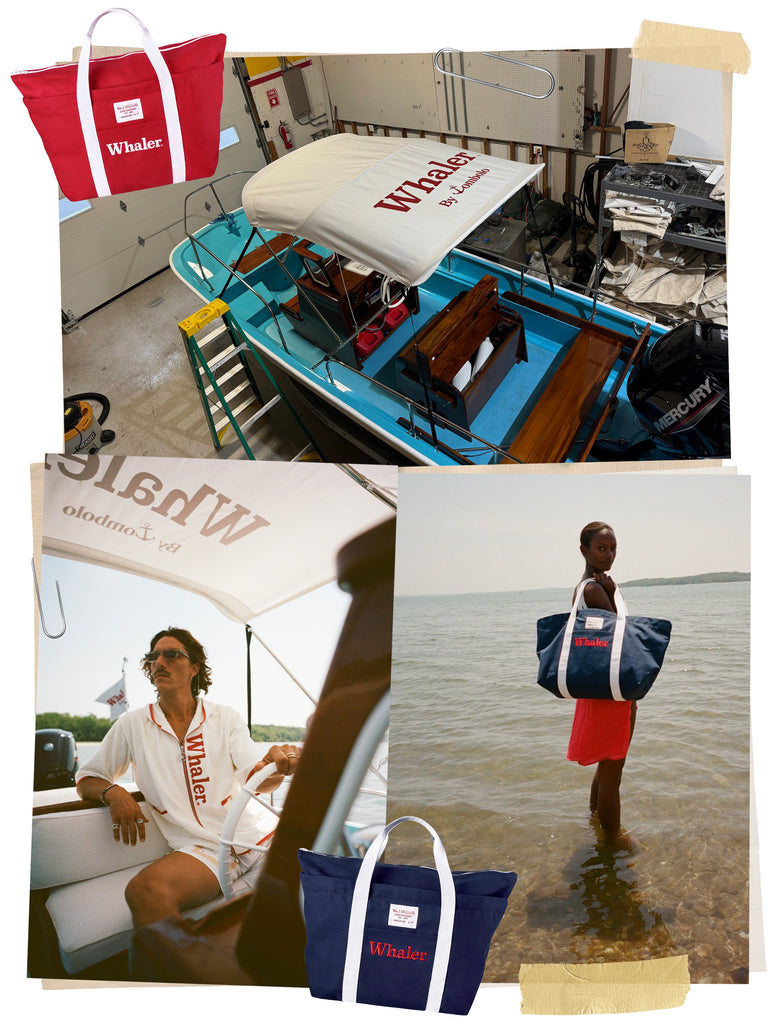 Wm. J. Mills & Co. developed a complete set of terry cloth cushions and a custom white bimini top with red screen-printed branding. They also served as the creative bridge between the apparel collection and the boat itself, with their handiwork extending to the collection’s tote bags, tying the nautical heritage of the boat to these very special accessories.