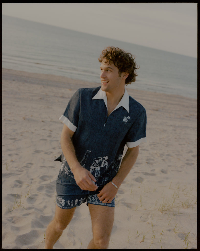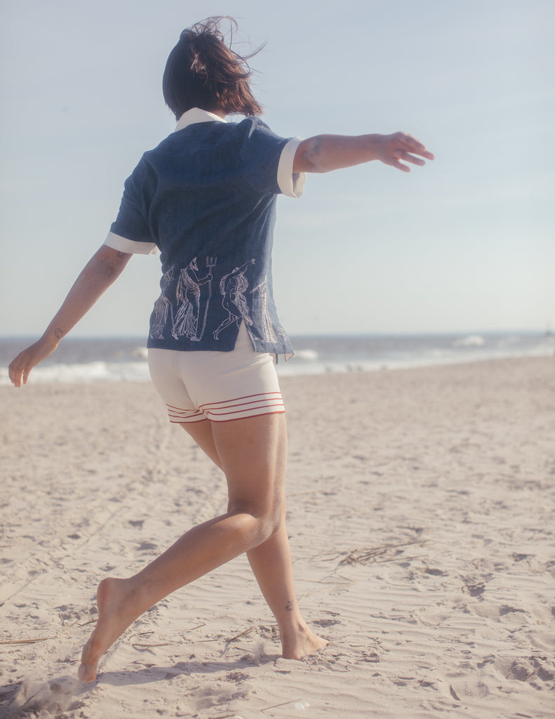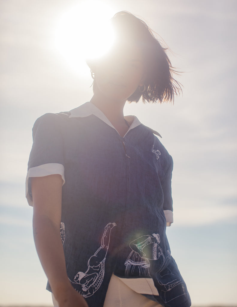 100% linen. Linen requires less water to produce than cotton, and it's strong, breathable and absorbent. It's no wonder it's the oldest known fiber. We chose a nice thick weight because it doesn't wrinkle as much and travels well, while still being breezy. Machine wash cold, tumble dry low.