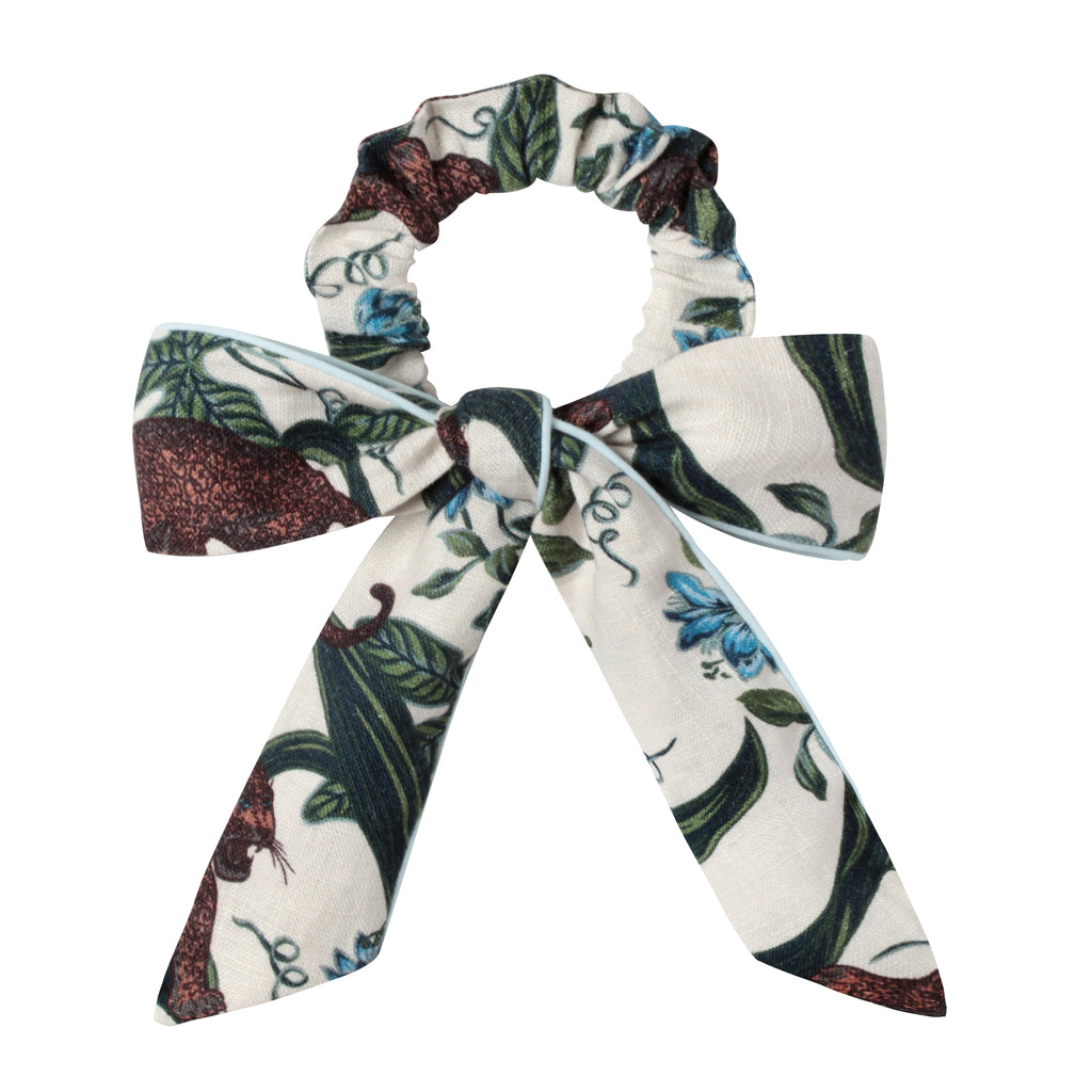 This scrunchie matches our Lurking Jaguar crop cut shirt in white, available here.