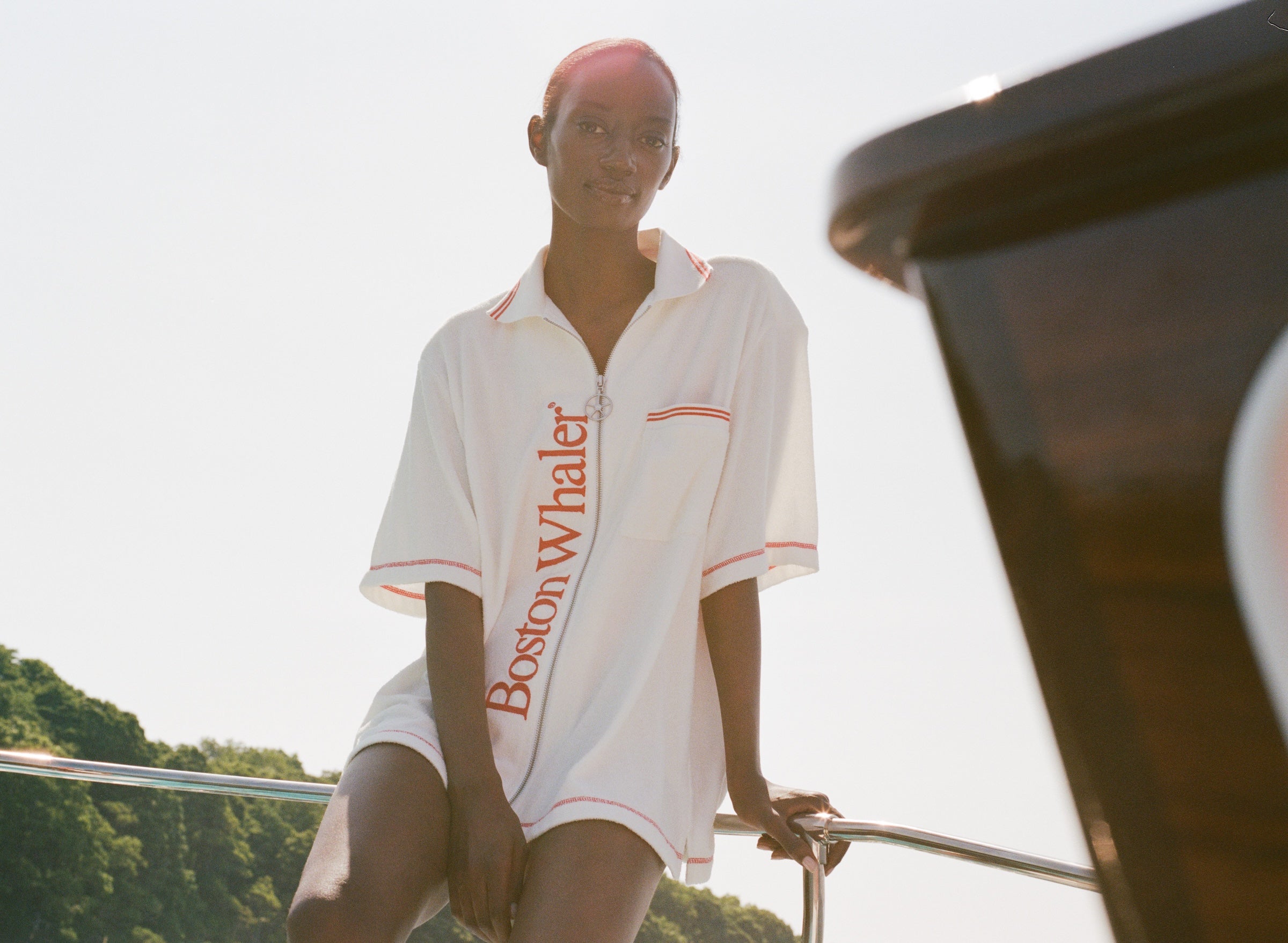 Part I of our ongoing partnership with Boston Whaler featured a 16 foot Whaler from the 1960s that Tombolo rescued from a yard on Shelter Island, New York. The boat, named “Cea Pea,” had seen better days after many years of neglect. Unassuming Cea Pea became the backdrop of the Part I photoshoot in all of her dilapidated glory. For Part II, Boston Whaler and Tombolo upped the ante: along with 18 new items (and the return of select best sellers from Part I), Cea Pea has been reborn and reimagined after a painstaking restoration. She looks as buoyant and beautiful as ever at over 50 years old, stealing the show as the centerpiece of this ongoing partnership.