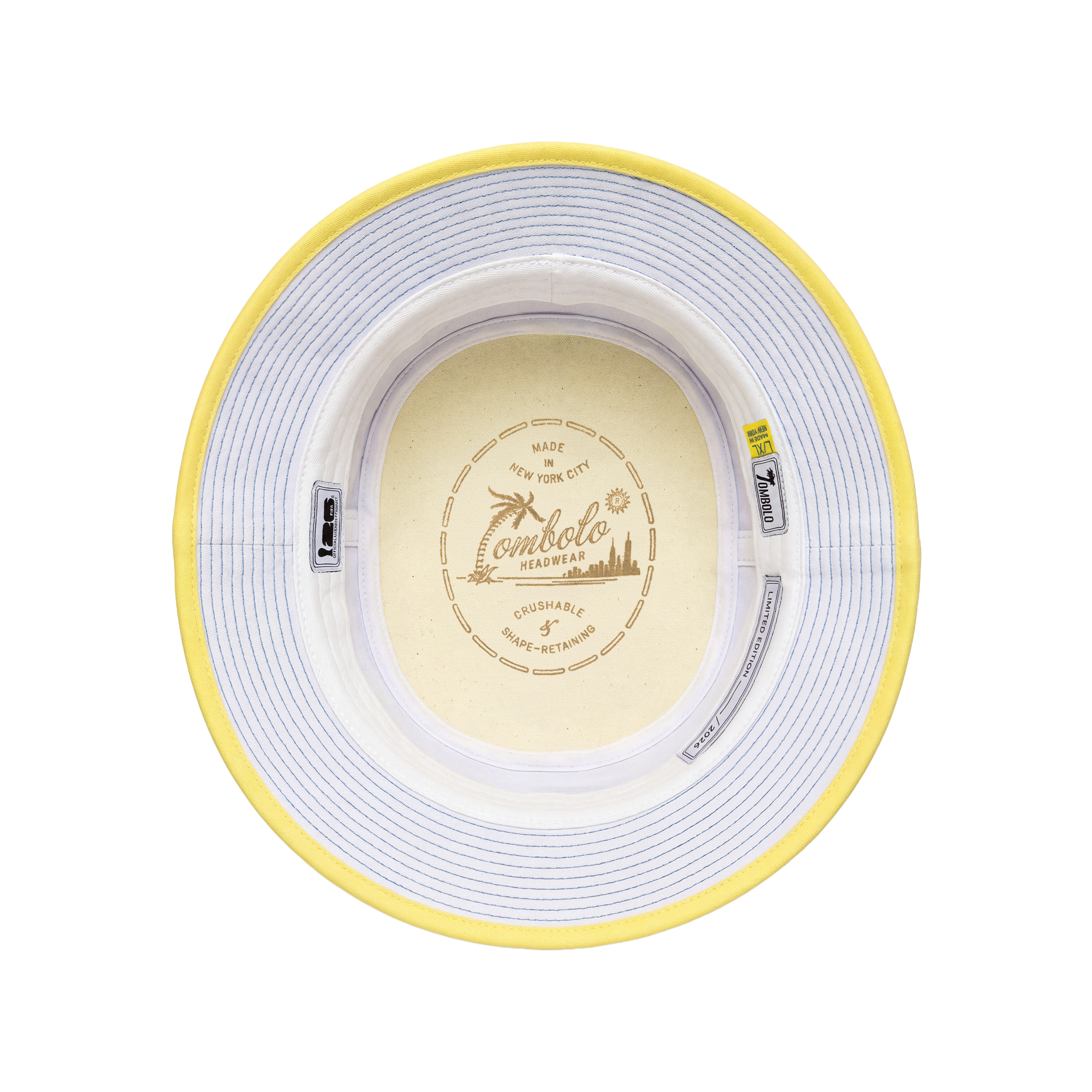 Yellow edge-binding on brim.