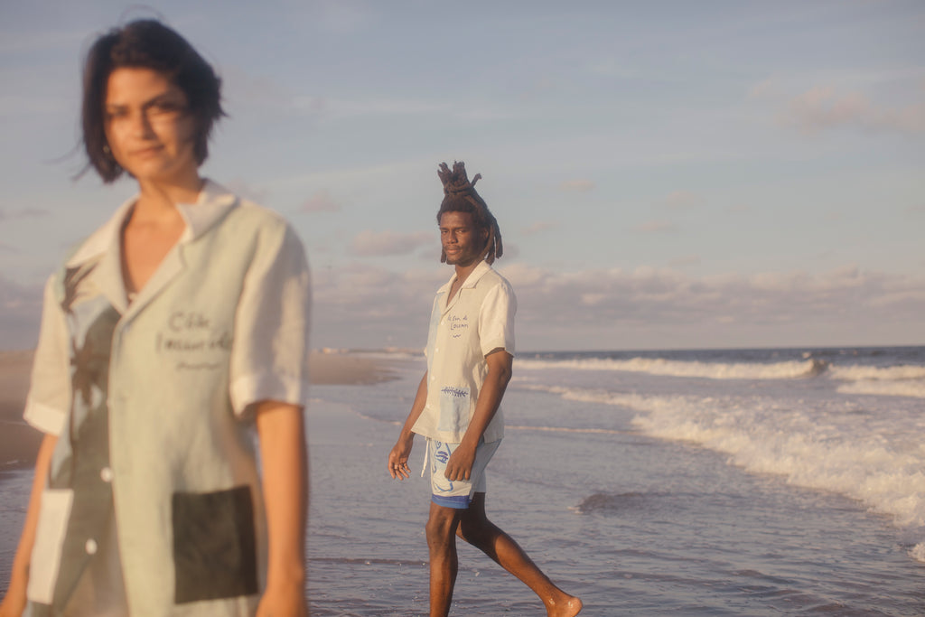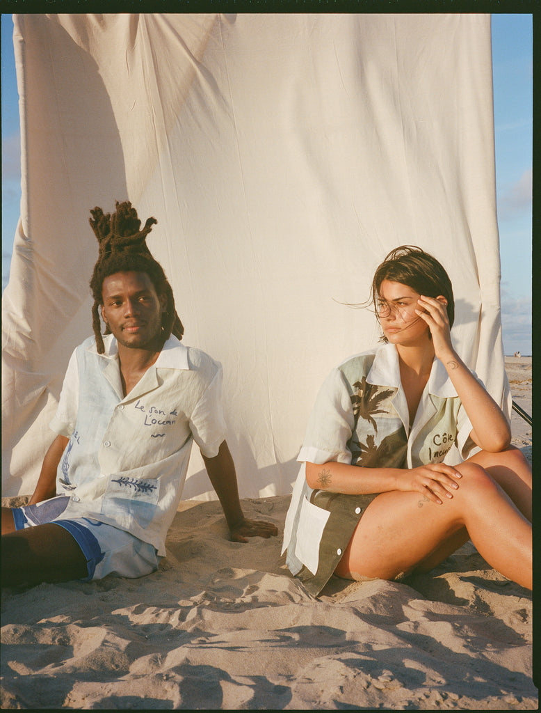 Hôtel Magique is a graphic design brand created by Dutch artist Milou Neelen. From her current home base in Bali, Milou has created a world of nostalgic escapism. The goal of our second collaboration was to add a second layer of artistry by capturing her brushstrokes on digitally printed linen. We overlaid embroidered elements to add to the effect.