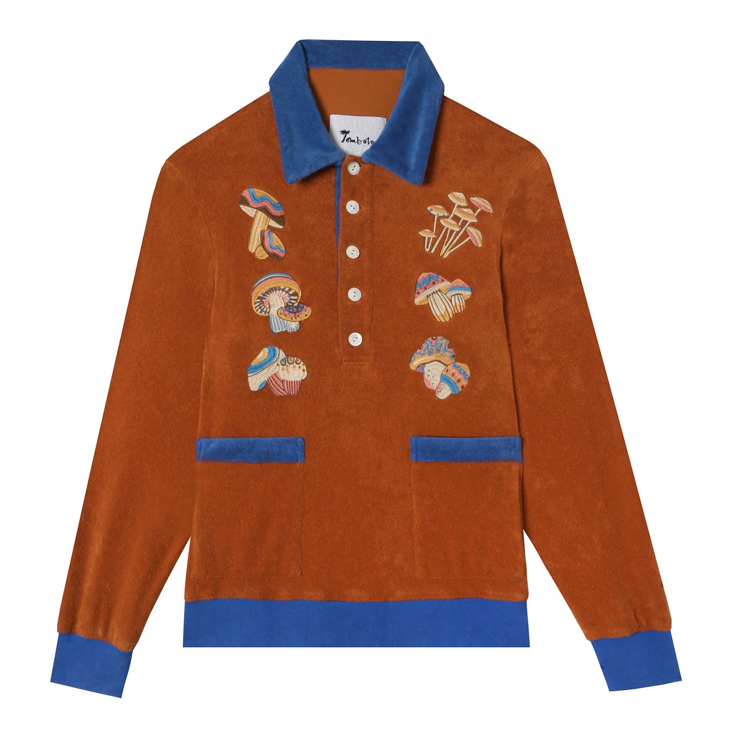 Embroidered with mushrooms.