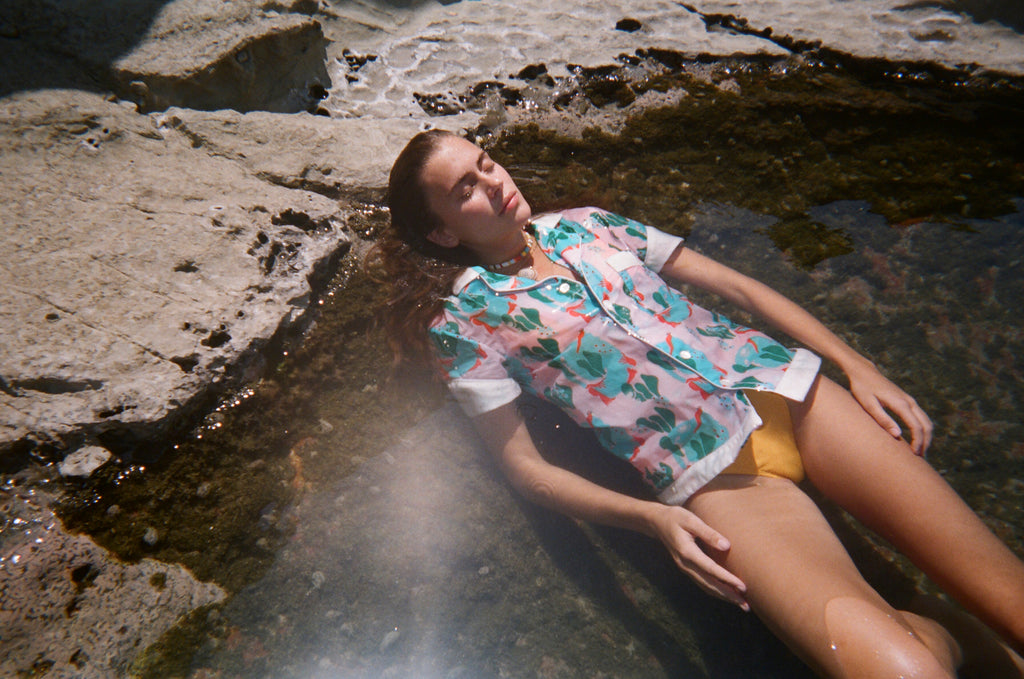 This shirt is a collaboration with artist Amber Vittoria based on her piece commissioned by Tombolo entitled, "Taking A Day" (2018).