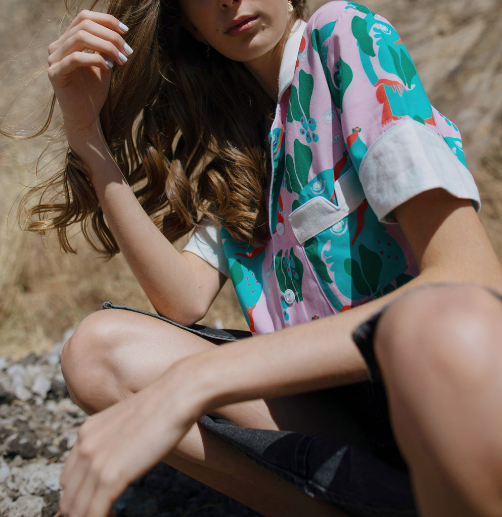 This is the first ever artist collaboration for Tombolo. We worked with Amber Vittoria, a renowned NYC-based artist who focuses her work on femininity and the female form. We commissioned a piece from her and transformed it into the shirt you see here. Her description: "'Taking A Day' is a shirt made to represent and celebrate Women’s History Month. It speaks to not only taking time to reflect on how far we have come in striving for equality amongst genders, but also taking the time to continuously push further for equality and intersectional feminism." For more on Amber Vittoria, check out her website or Instagram.