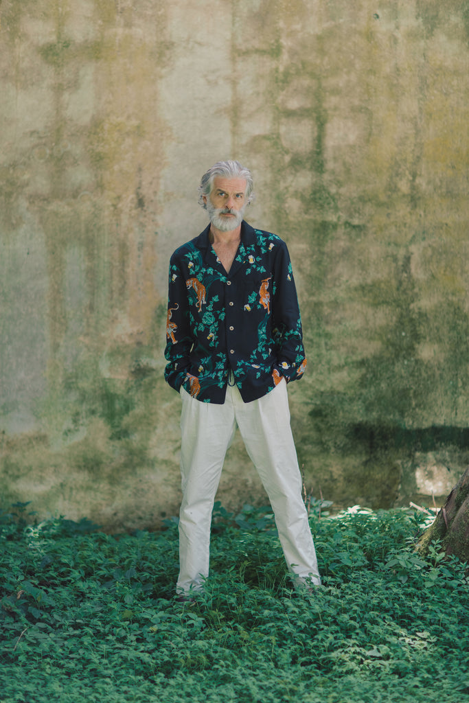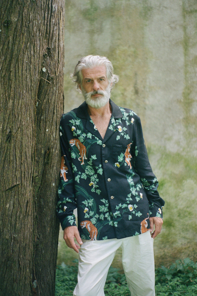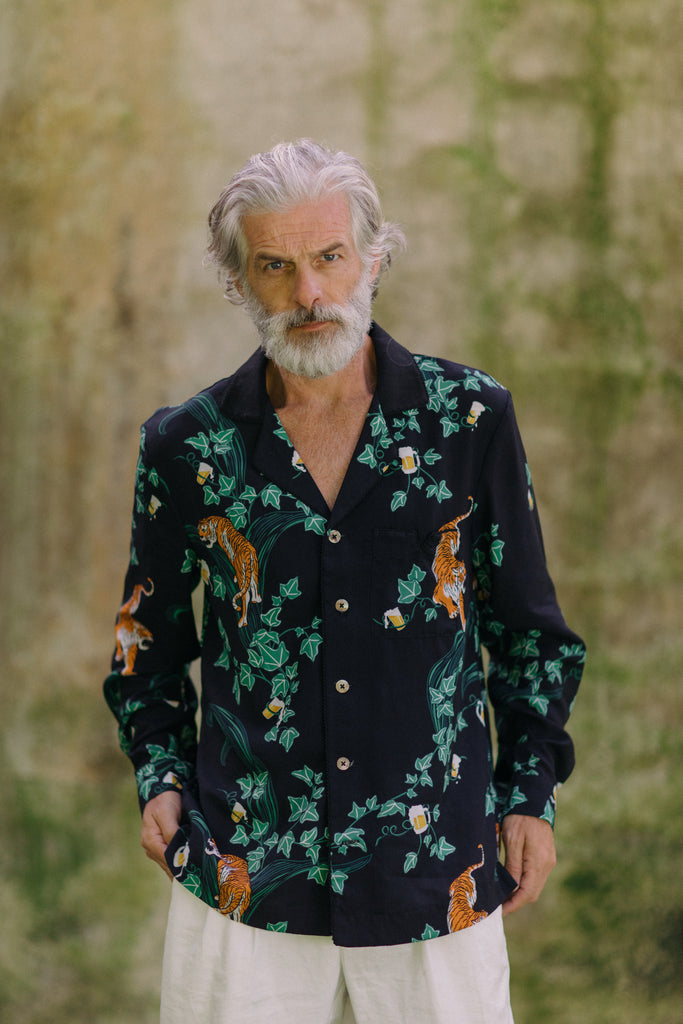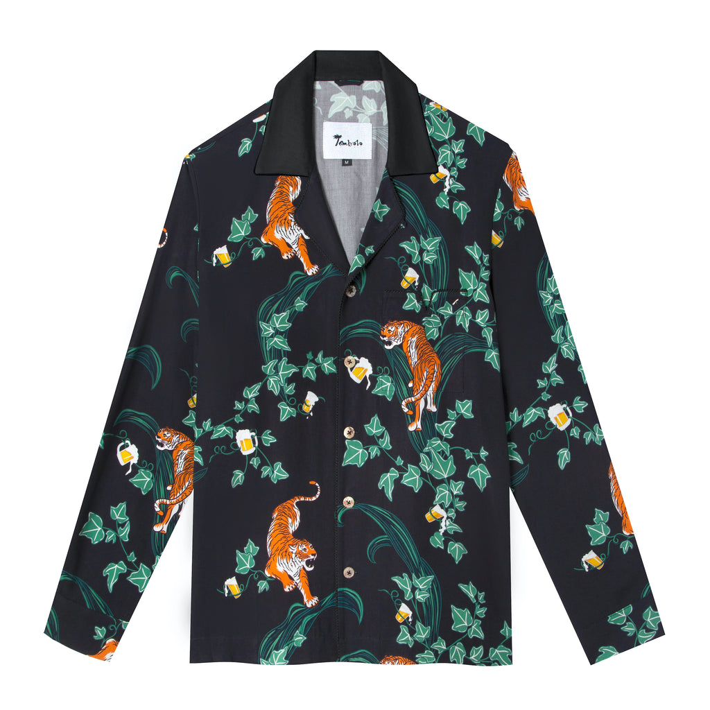 Original Tombolo artwork: this print depicts tigers, vines, and hidden beverages.