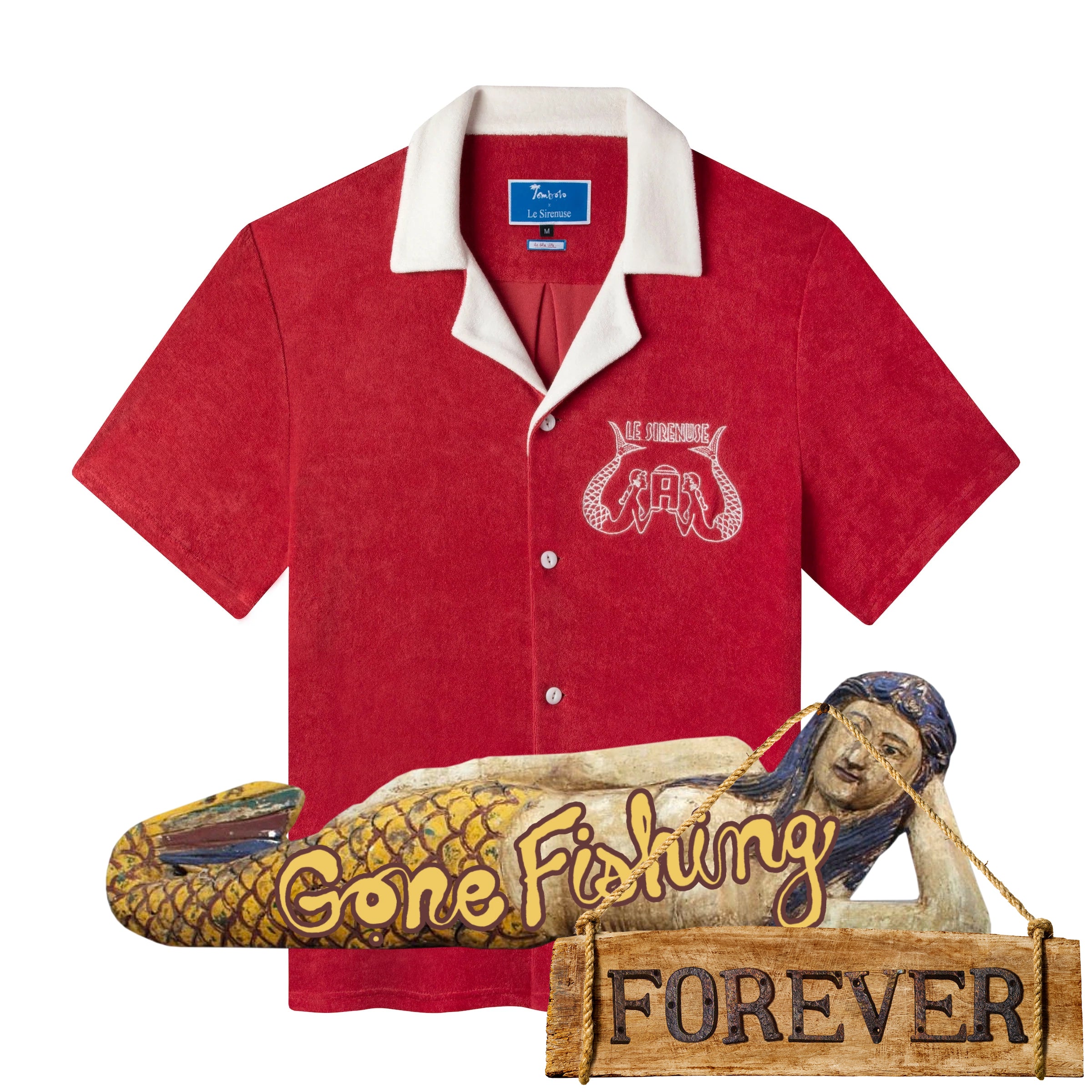 Made of lightweight organic terry cloth, this shirt is perfect for a cool summer night and doubles as a towel in a pinch. 'Le Sirenuse' logo is embroidered in white thread on the left chest.