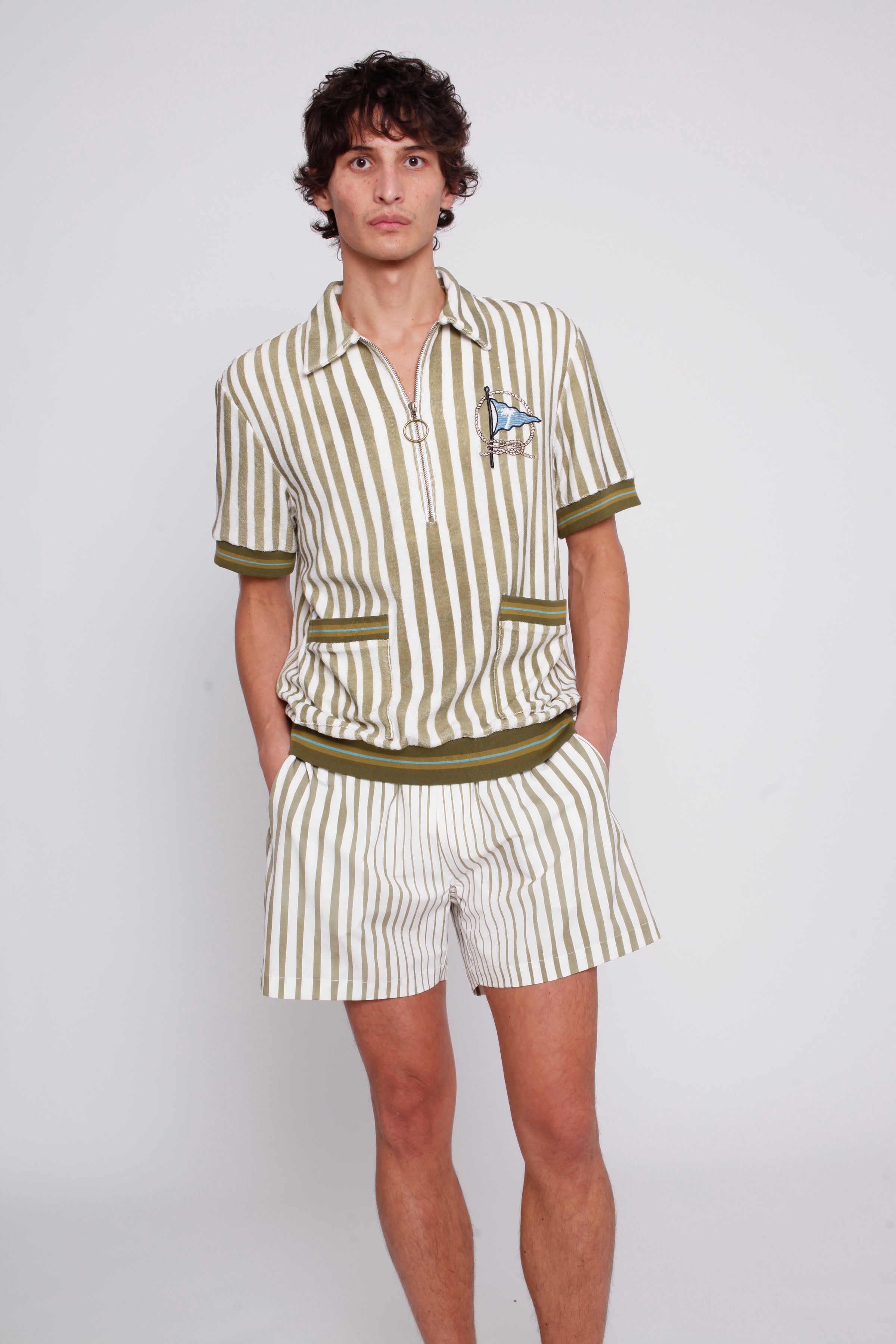 100% organic cotton terry, carefully engineered to ensure lightweight comfort, breathability and ease of care. This fabric is "French Terry" -- the exterior has the terry loops like a towel, and the interior is smooth and flat. Organic terry cloth cotton uses less water than conventional cotton and no chemicals that can harm the environment and workers. Machine wash cold, and hang dry or tumble dry low. While we preshrink all of our fabric, cotton knit still has a tendency to shrink a small degree (~1-4%) on the first wash. To minimize shrinkage, avoid high heat dryers.