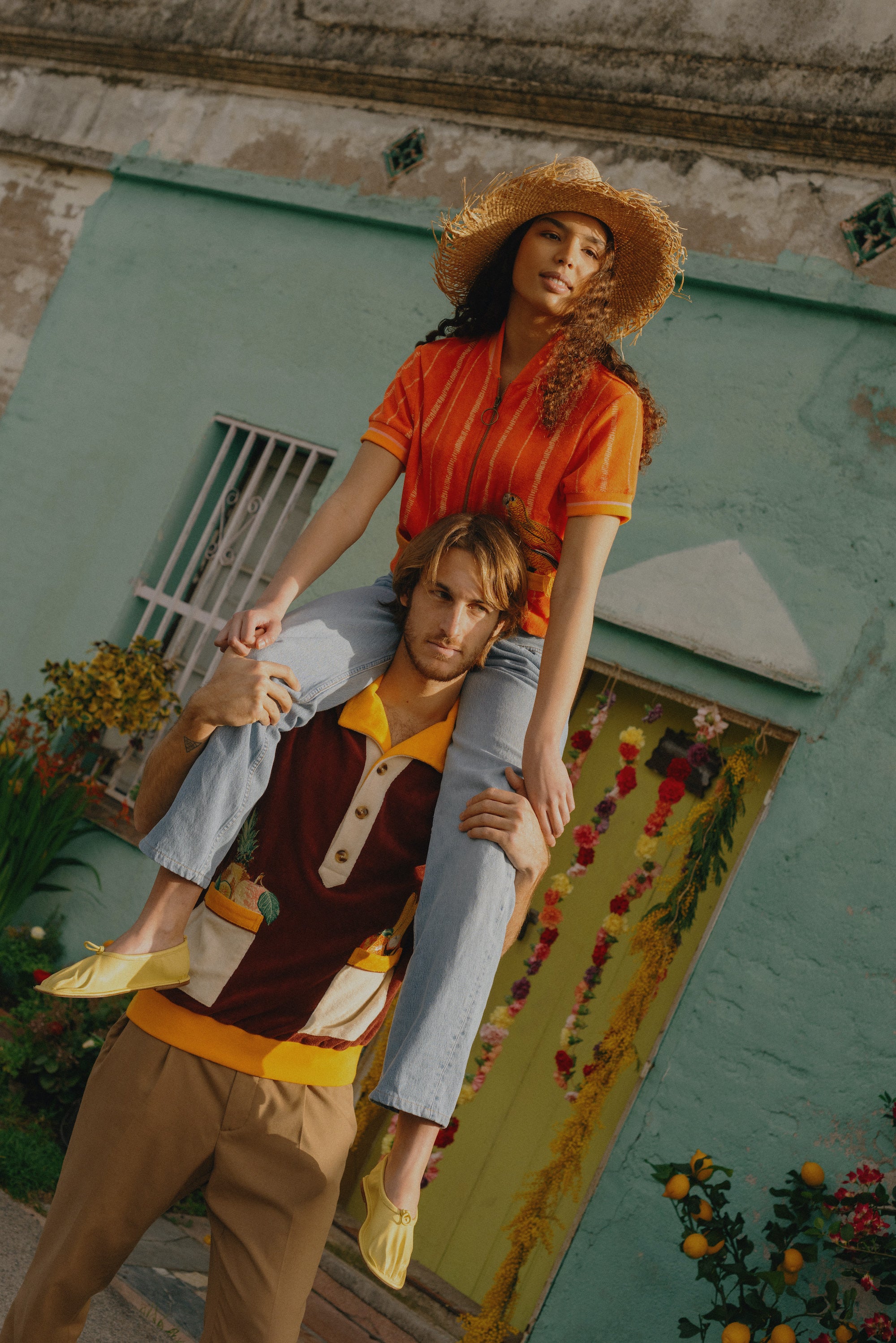 🦜 Tangerine, cream, saffron and pink rendition of the classic cabana shirt. 🦜