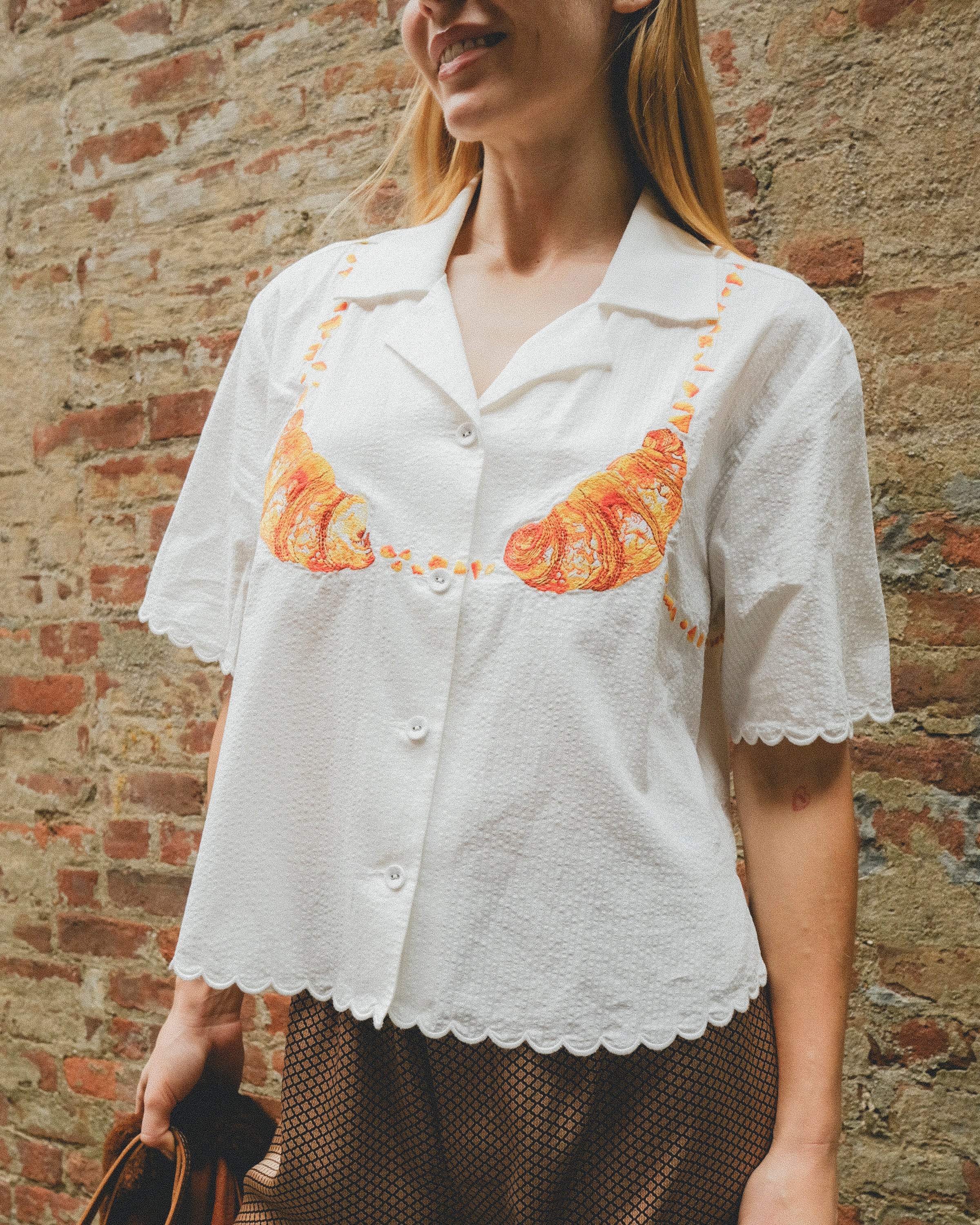 This shirt is our new relaxed crop cut fit, designed for women in particular: It is boxy with a flattering crop, dropped shoulders and half sleeves. This breezy silhouette is more generous than our standard crop cut. This shirt runs true to size for women. Please note that we changed the silhouette from our standard crop-cut fit to our relaxed crop-cut fit in October 2025.