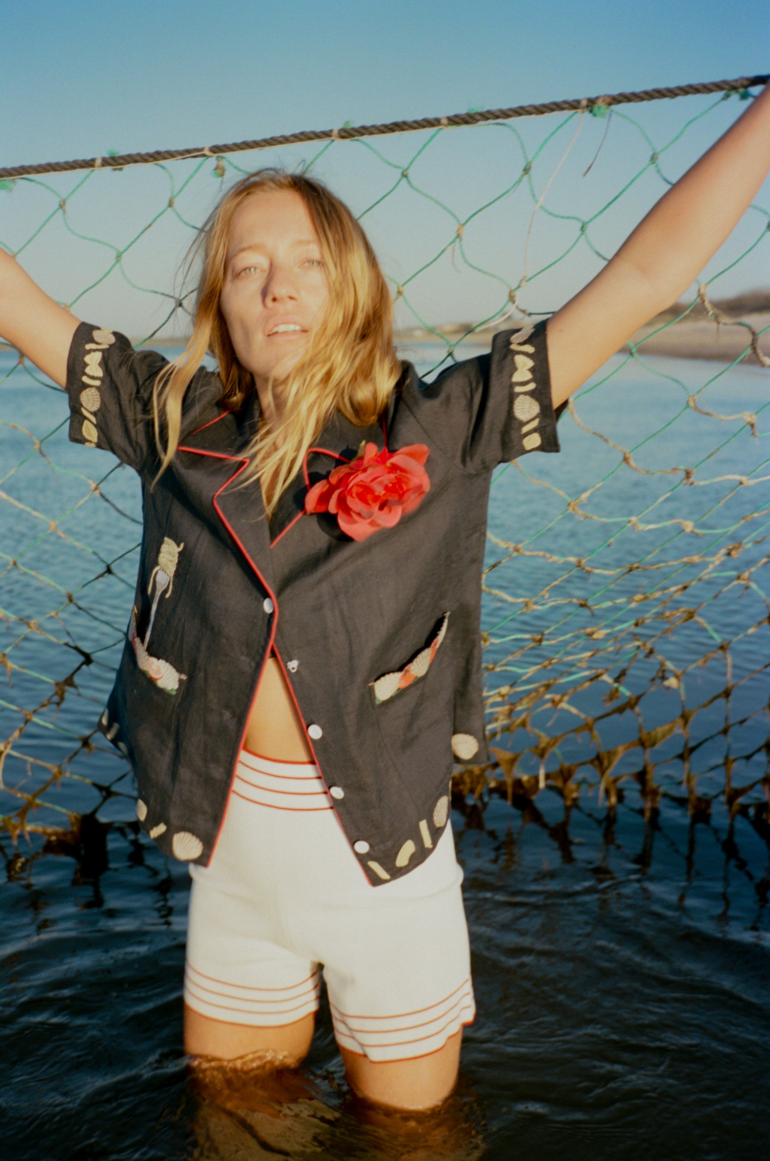 Lyla (second female model pictured) is 5' 9 1/2" with bust/waist/hips of 34''/25''/36'' and wears a size 6 US dress. She is wearing a size M shirt. She is also pictured wearing the matching shorts in size XS.