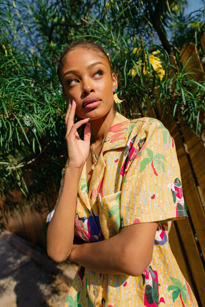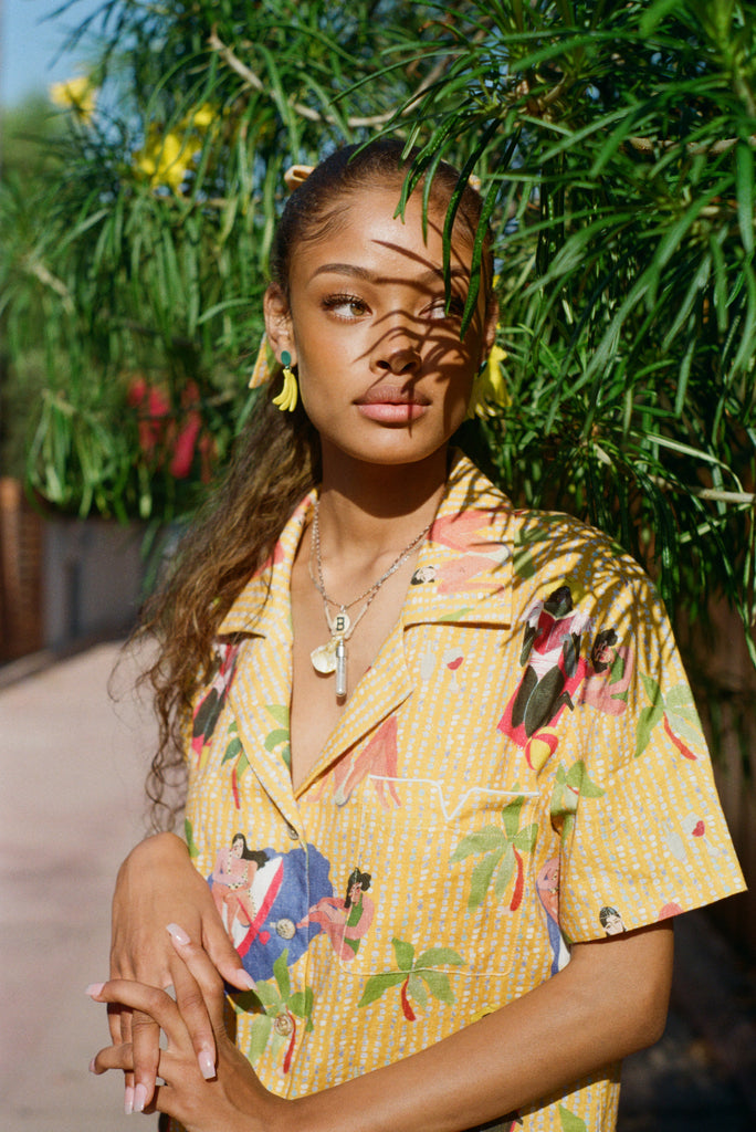 This cut was designed with women in mind but men might like it too: it's still a boxy Hawaiian style, but with a flattering crop and shorter sleeves than our standard unisex shirts.