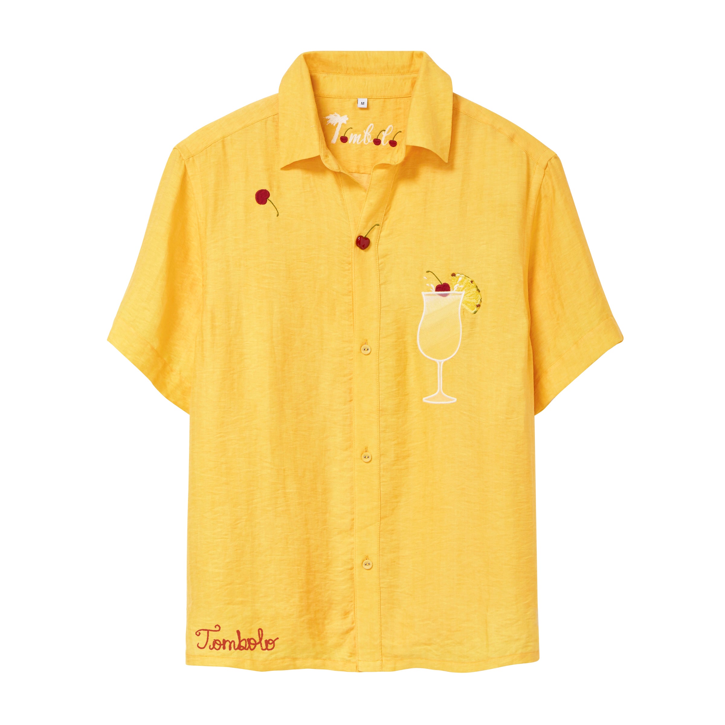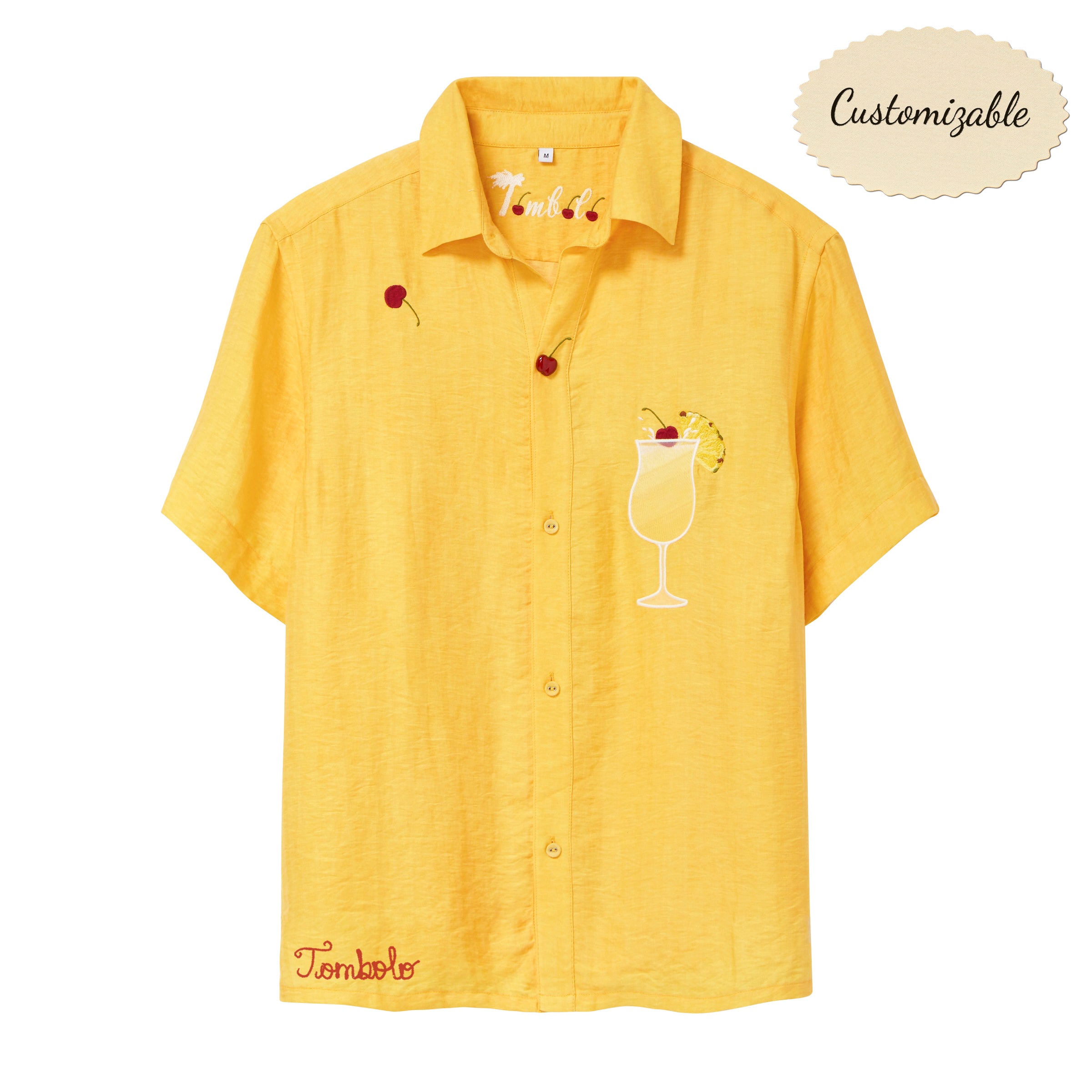 A functional cherry snap to open the shirt.