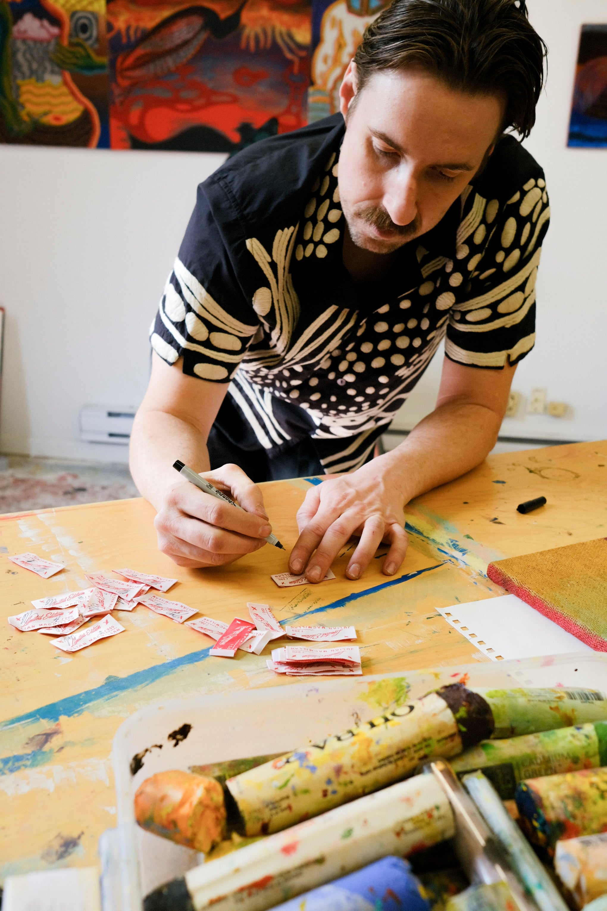 Custom, woven collaboration label, individually numbered ('X / 200') and initialed by Julian MacMillan himself.