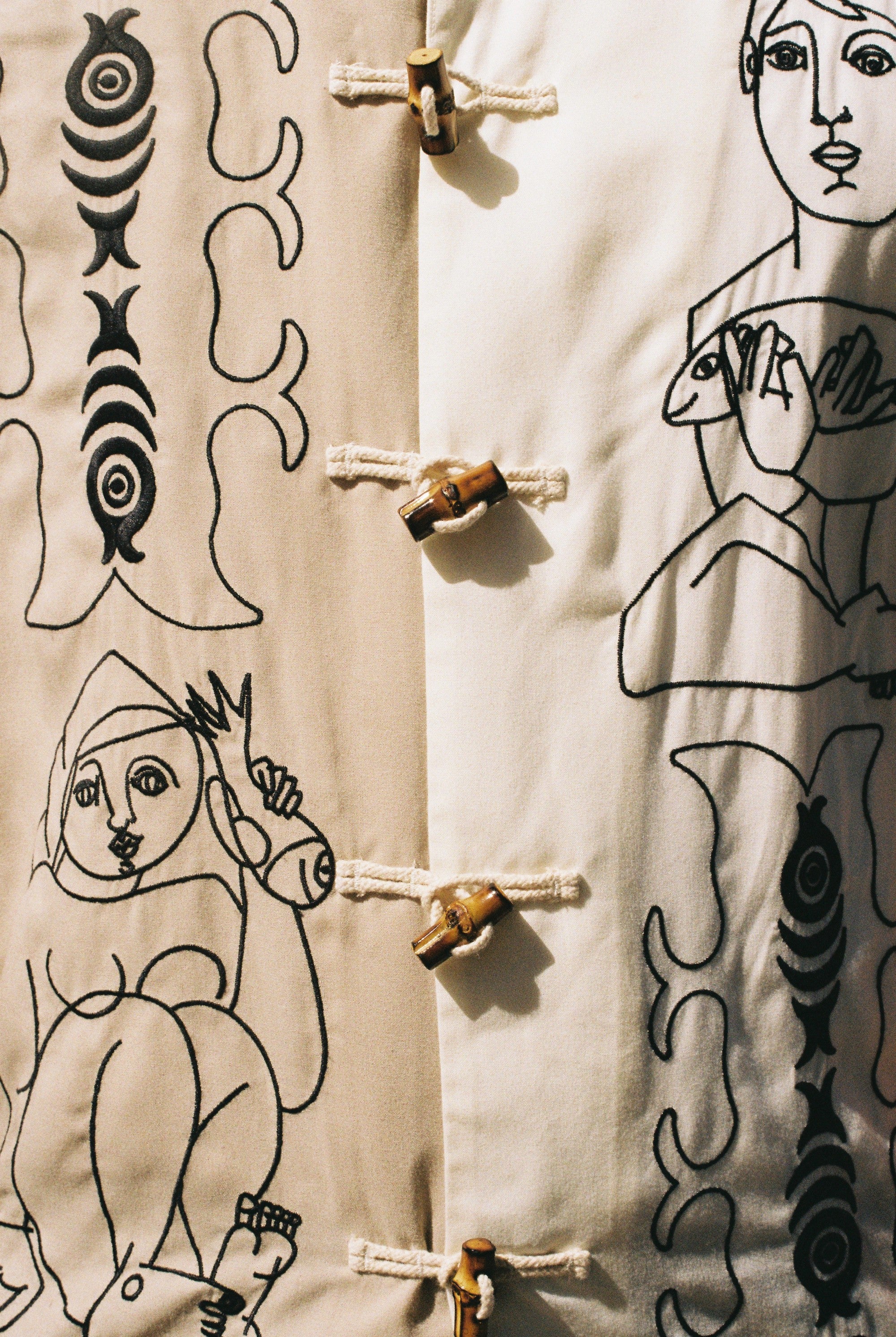 Bamboo toggle closures.