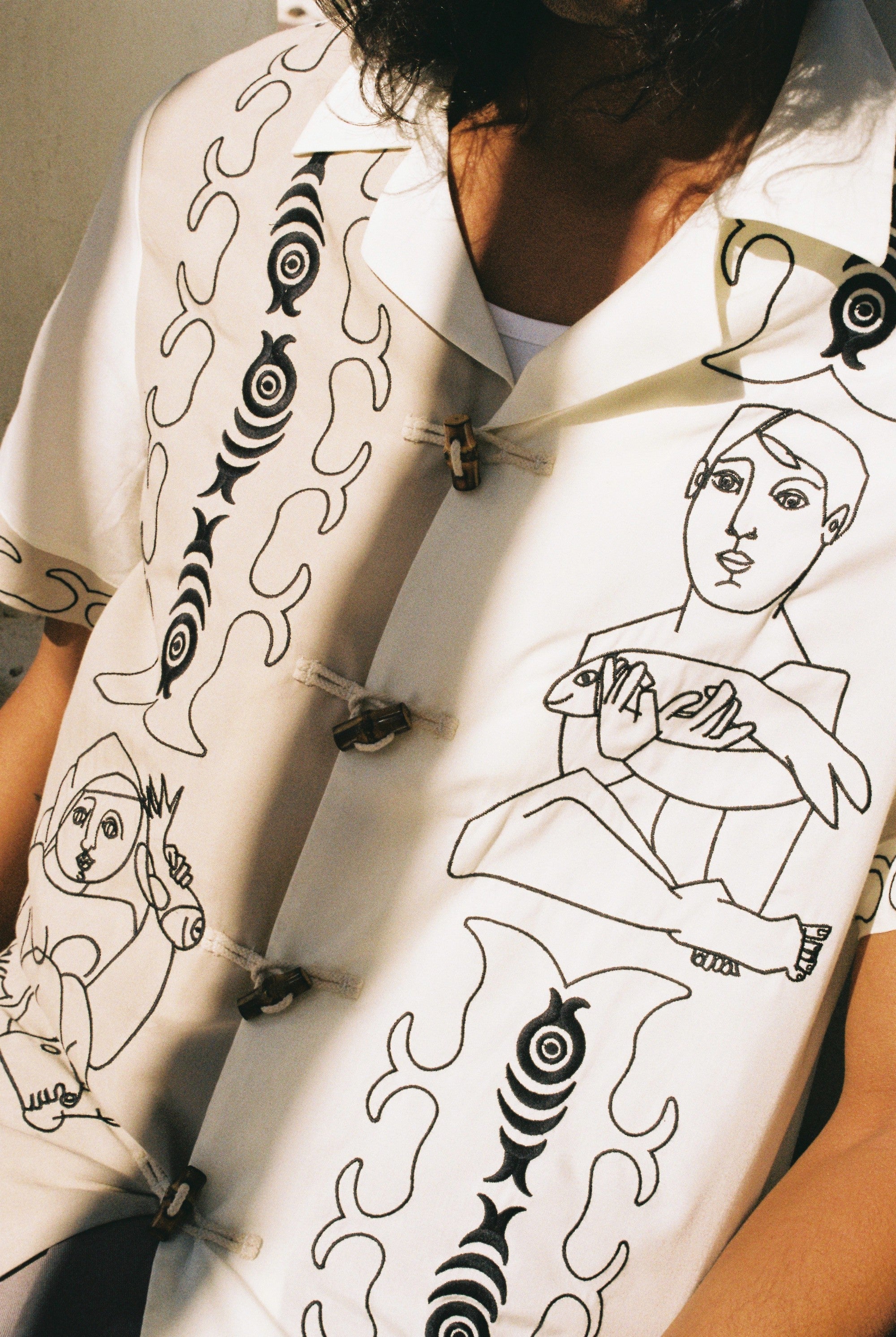 Oversized, woven interior label featuring Marie's work and signature. Limited edition label numbered 'X of 500' woven into the interior of the shirt.