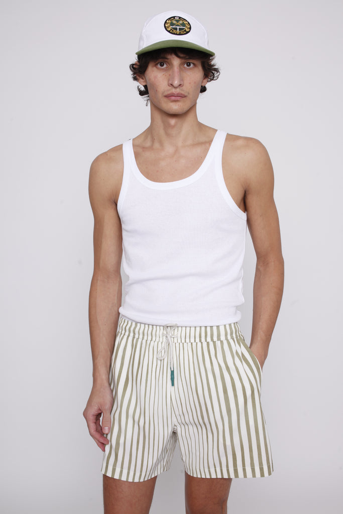☸︎ Watercolor stripe print in a moss color (green with a hint of brown).  ☸︎